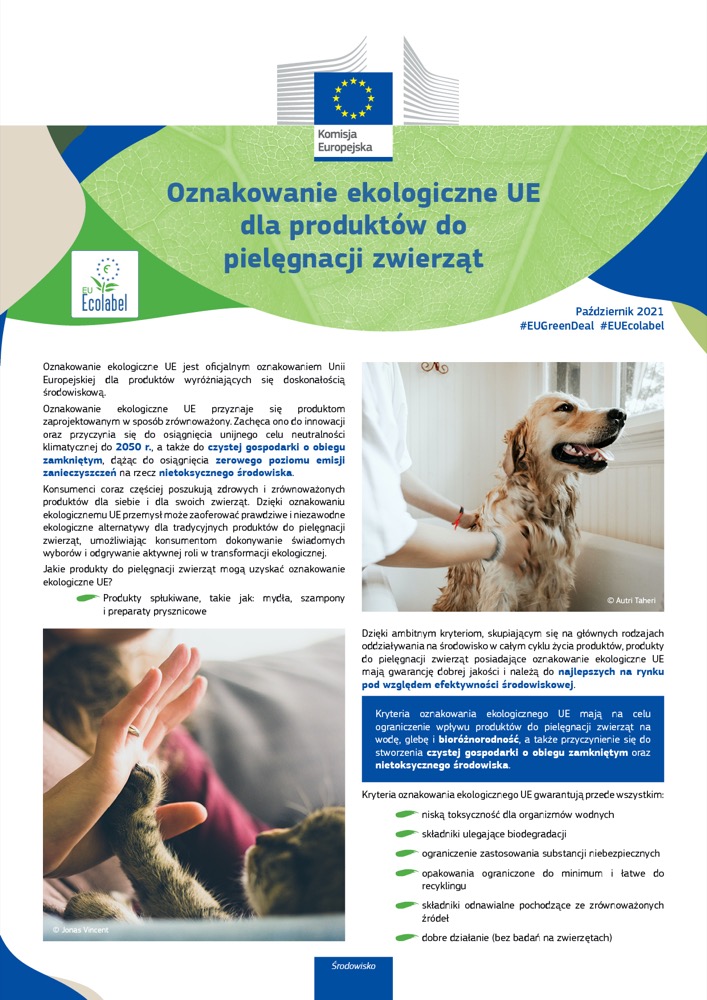 Oznakowanie ekologiczne UE dla produktów do pielęgnacji zwierząt