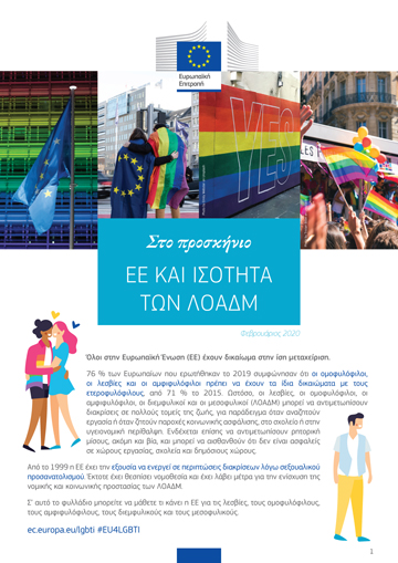 Σ’ αυτό το φυλλάδιο μπορείτε να μάθετε τι κάνει η ΕΕ για τις λεσβίες, τους ομοφυλόφιλους, τους αμφιφυλόφιλους, τους διεμφυλικούς και τους μεσοφυλικούς.