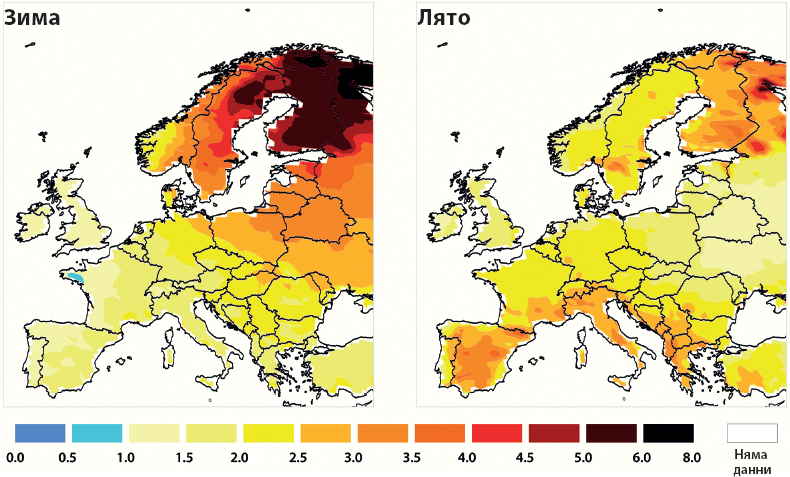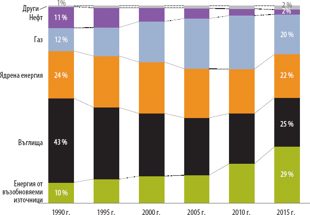 Източник: Европейска агенция за околна среда, Тенденции и прогнози в Европа през 2016 г. – Проследяване на напредъка по отношение на целите на Европа в областта на климата и енергетиката.