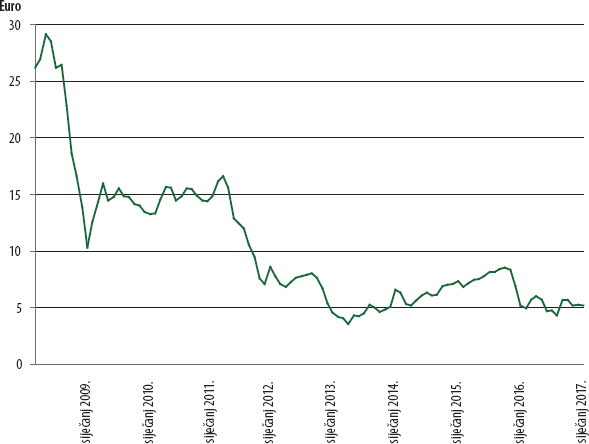 Izvor: Europska agencija za okoliš, Trends and projections in Europe 2016 – Tracking progress towards Europe’s climate and energy targets (Trendovi i predviđanja u Europi 2016. – praćenje napretka u dostizanju klimatskih i energetskih ciljnih vrijednosti Europe).