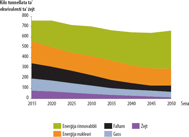 Sors: Qafas Strateġiku għal Unjoni tal-Enerġija Reżiljenti b’Politika dwar il-Bidla fil-Klima li tħares ‘il quddiem (COM(2015) 80 final tal-25.2.2015).