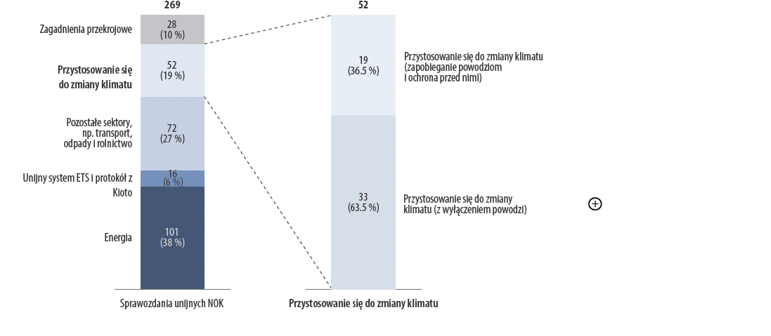 IXNawet jeśli działania na rzecz ograniczenia emisji gazów cieplarnianych odniosą zamierzony skutek, a cel porozumienia paryskiego (zatrzymanie wzrostu temperatury na świecie na poziomie poniżej 2°C w stosunku do epoki przedindustrialnej) zostanie osiągnięty, przystosowanie się do zmian klimatycznych pozostaje nieodzowne. Już przy obecnym wzroście ocieplenia, którego poziom sięga nieco powyżej 1°C w stosunku do epoki przedindustrialnej, skutki zmiany klimatu są odczuwalne pod względem środowiskowym, społecznym i gospodarczym. Gdy temperatura wzrośnie o pełne 2°C, klimat Europy w porównaniu z obecną sytuacją ulegnie diametralnym zmianom. W dziedzinie przystosowania się do zmiany klimatu podstawę działań unijnych stanowi strategia adaptacyjna UE z 2013 r. Za jej pośrednictwem państwa członkowskie skłaniane są do podjęcia pewnych kroków, które nie są jednak obowiązkowe.