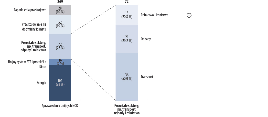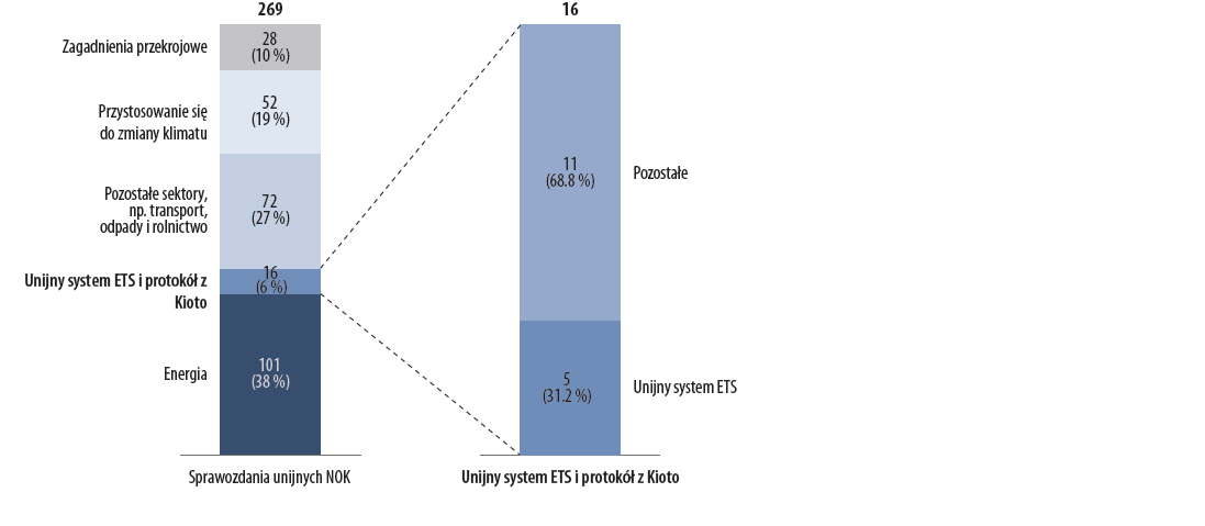 XW ostatnich latach NOK i Trybunał przeprowadziły kontrole w szerokim zakresie tematów związanych z energią i zmianą klimatu. Największa część sprawozdań dotyczyła kontroli w dziedzinie energii, mniej uwagi poświęcono natomiast pozostałym zagadnieniom, takim jak przystosowanie się do zmiany klimatu. Choć zasięg kontroli był zróżnicowany, można wskazać szereg wspólnych ustaleń. W wyniku przeprowadzonych kontroli stwierdzono, że różnice w sposobie, w jaki państwa członkowskie wdrożyły przepisy unijne i kierowały swoimi rynkami energii, zahamowały postępy w tworzeniu wewnętrznego rynku energii UE. W produkcji energii ze źródeł odnawialnych nastąpił wprawdzie wzrost, a jej koszt w ujęciu globalnym zmniejszył się, lecz kontrole wskazują na brak efektywności pod względem kosztów i na przeszkody w inwestowaniu. Również kontrole w zakresie efektywności energetycznej regularnie dowodziły problemów związanych z efektywnością pod względem kosztów, a w odniesieniu do energii jądrowej NOK wykryły znaczne wzrosty kosztów i opóźnienia. Dzięki kontrolom okazało się ponadto, że przejście na niskoemisyjny system transportowy nie jest wystarczająco skuteczne. Jeżeli zaś chodzi o przystosowanie się do zmiany klimatu, kontrole były głównie zorientowane na zagadnienia związane z powodziami. W tym zakresie kontrolerzy wykryli problemy dotyczące ochrony przeciwpowodziowej, zapobiegania powodziom i reagowania na nie.