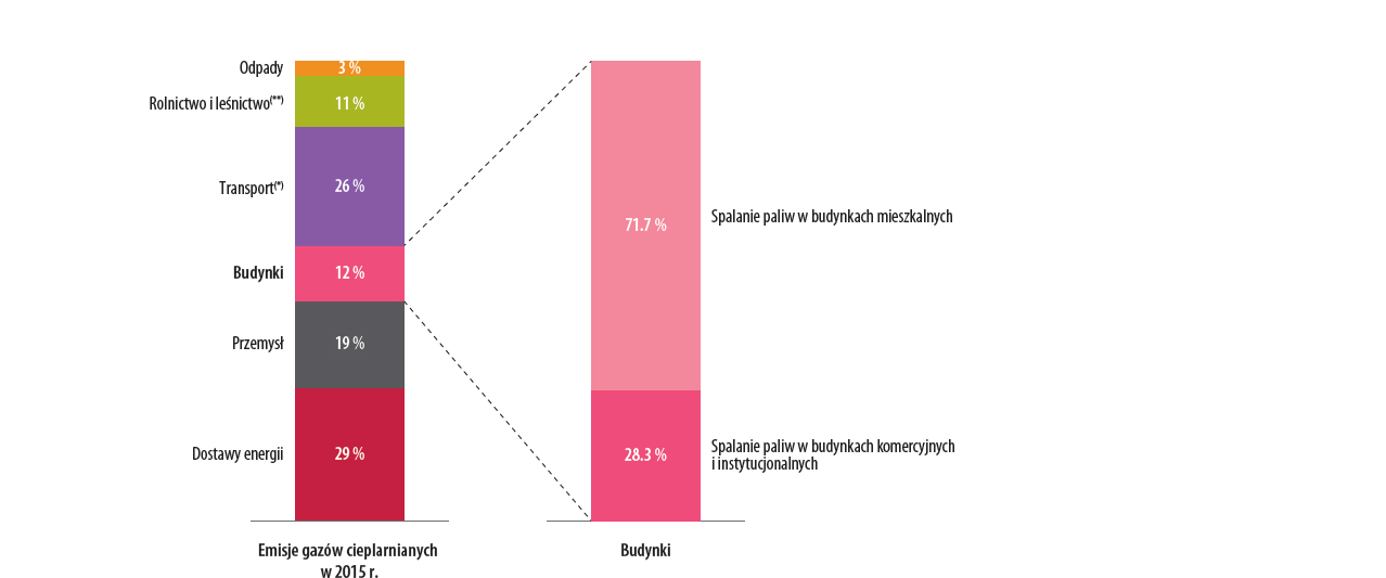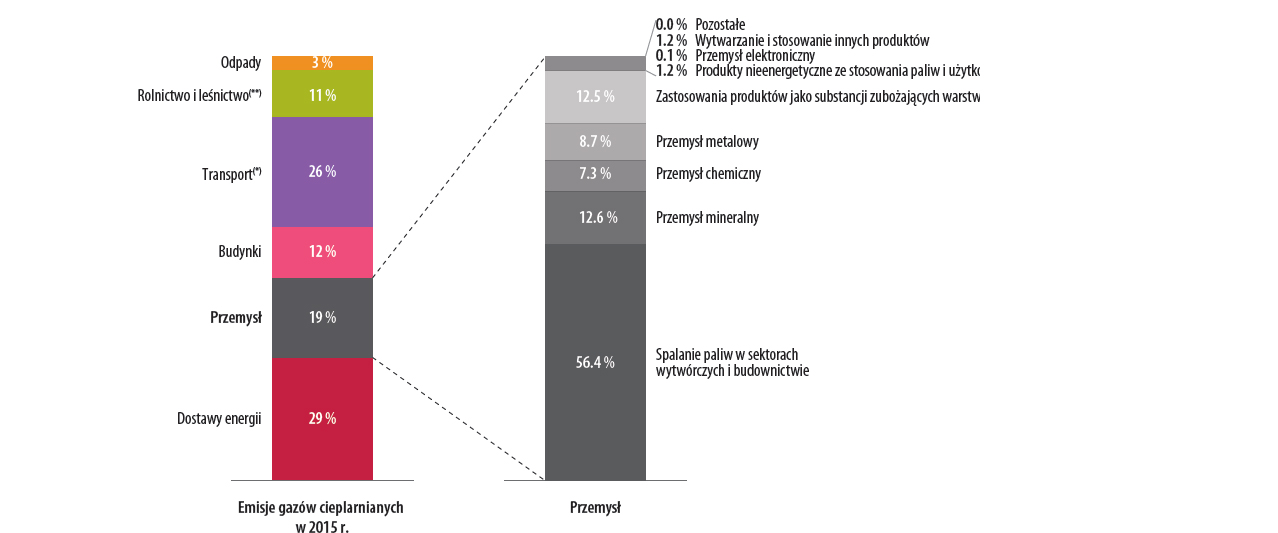 04Kwestie energii i zmiany klimatu są ściśle ze sobą powiązane, ponieważ wytwarzanie energii (głównie pochodzącej z przetwarzania i spalania paliw kopalnych) oraz jej wykorzystywanie (np. na potrzeby przemysłu, gospodarstw domowych i transportu) odpowiada za 79% unijnych emisji gazów cieplarnianych. W efekcie transformacja wytwarzania i wykorzystywania energii ma zasadnicze znaczenie dla przeciwdziałania zmianie klimatu. Zaspokojenie potrzeb energetycznych przy równoczesnym ograniczeniu emisji gazów cieplarnianych stanowi główne wyzwanie dla UE i zrzeszonych w niej państw.