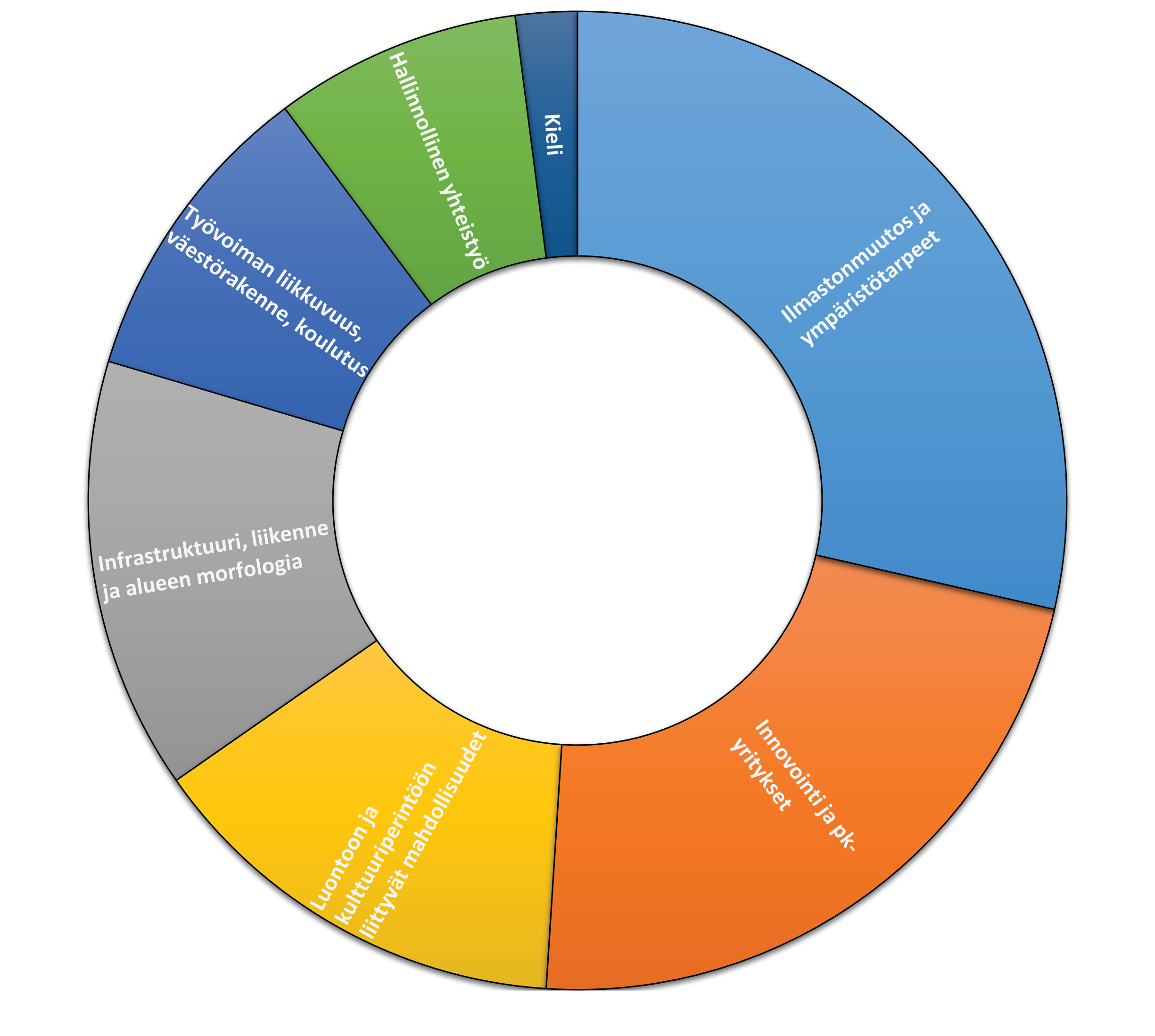 - Ohjelmasuunnittelussa olisi keskityttävä 11 määriteltyyn temaattiseen tavoitteeseen23, ja vähintään 80 prosenttia varoista olisi kohdistettava enintään neljään temaattiseen tavoitteeseen24.