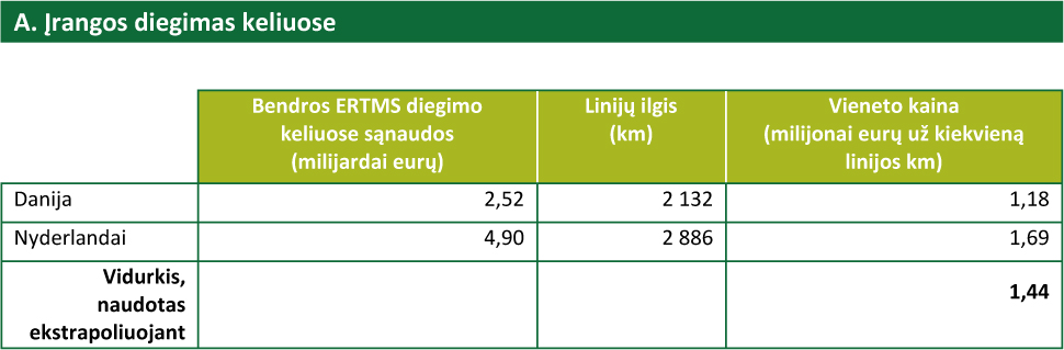 ERTMS diegimo sąnaudų linijinės ekstrapoliacijos metodika