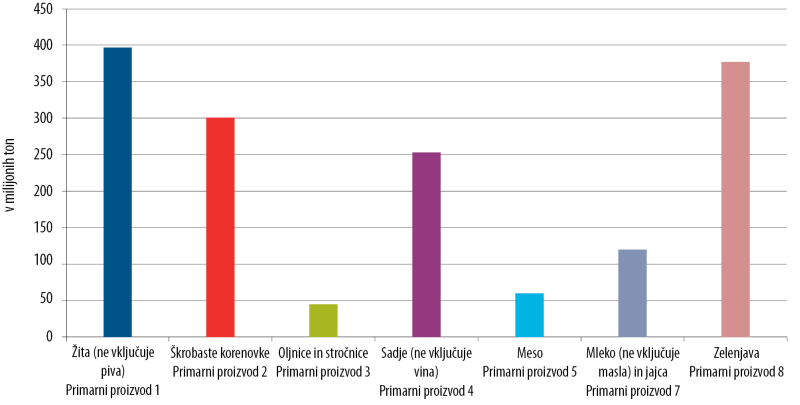 1 Analiza Svetovnega inštituta za vire na podlagi dokumenta FAO Global food losses and waste – extent, causes and prevention (izguba in potrata hrane po svetu – obseg, vzroki in preprečevanje) iz leta 2011. Rim: ZN FAO. Junij 2013; http://www.mtt.fi/foodspill, 2011; https://www.fh-muenster.de/isun/lebensmittelabfall-projekte.php, 2012; izračuni Institute for Technology Assessment and Systems Analysis (inštituta za ocenjevanje tehnologij in analizo sistemov) na podlagi metodologije SIK (švedskega inštituta za hrano in biotehnologijo) (Gustavsson et al., 2013); FUSIONS, Estimates of European food waste levels (ocene ravni potrate hrane v Evropi), 2016.