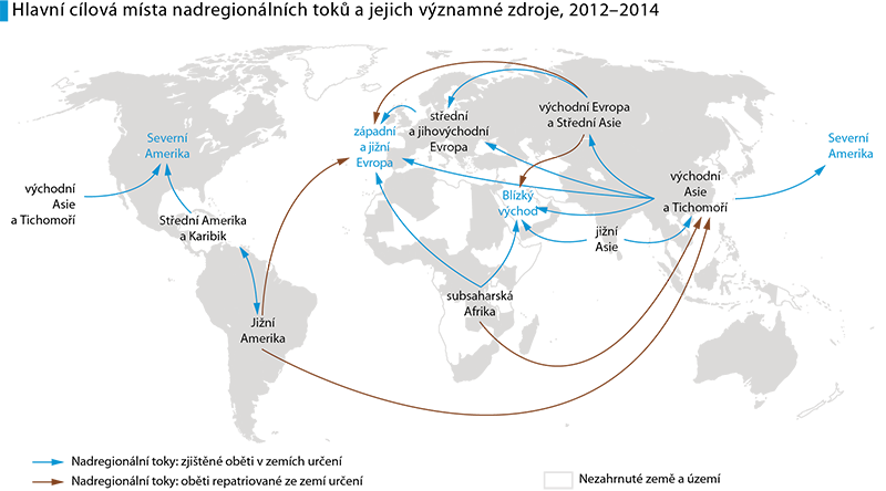 6 Ve většině ostatních částí světa se s velkou většinou obětí obchoduje uvnitř téhož regionu. Viz Global Report on Trafficking in Persons (Celosvětová zpráva o obchodování s lidmi) (2014), UNODC, 2014.