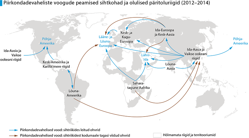 6 Enamikus muudes maailma osades toimub suurem osa inimkaubandusest sama piirkonna territooriumil. Vt ÜRO uimastite ja kuritegevuse vastu võitlemise büroo 2014. aasta aruanne inimkaubanduse kohta.