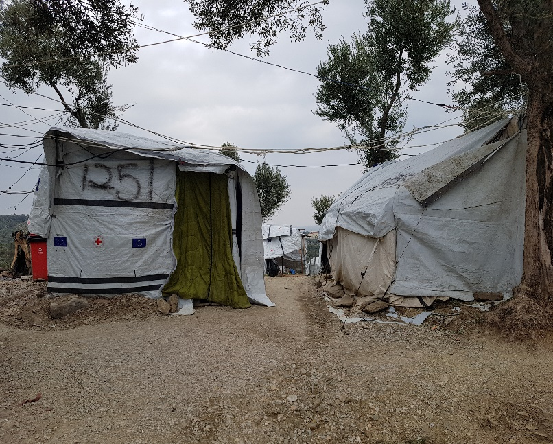 25De italienska mottagningscentrumen är antingen tomma eller nästan tomma, rena och välutrustade. I bjärt kontrast till detta är levnadsvillkoren i grekiska mottagningscentrum, i synnerhet på Lesvos och Samos, dåliga på grund av överbeläggning, brist på läkare och otillräcklig säkerhet. Mottagningscentrumen på Lesvos och Samos, med kapacitet för 3 100 och 640 migranter, hyste 5 096 respektive 3 745 personer vid tidpunkten för vårt granskningsbesök i februari 2019. Många av dem bodde i tält utanför mottagningscentrumets område (bild 1). Långsamma upphandlingsförfaranden, försenat utförande av projekt för underhåll och upprustning, nya migranter som fortfarande anländer och utdragna asylförfaranden utgör tillsammans ett hinder för en snabb förbättring av situationen5.