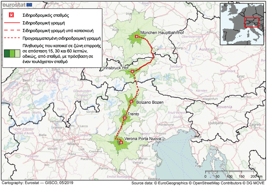 Οι εκτιμήσεις αυτές αφορούν βέβαια μόνο τις κύριες υποδομές, όμως, πρέπει επίσης να ολοκληρωθούν και οι πρόσθετες δευτερεύουσες υποδομές προτού θεωρηθεί ότι η κύρια υποδομή είναι έτοιμη να τεθεί σε πλήρη λειτουργία και να αποφέρει στο ακέραιο τα αποτελέσματά της στο δίκτυο. Αξιολογήσαμε την τρέχουσα κατάσταση σχεδιασμού των συνδετικών υποδομών, όπως γραμμές πρόσβασης που συνδέονται με υφιστάμενα συμβατικά σιδηροδρομικά δίκτυα, τερματικοί σταθμοί συνδυασμένων μεταφορών για τη στήριξη των εσωτερικών πλωτών και σιδηροδρομικών εμπορευματικών μεταφορών και συνδέσεις με το υφιστάμενο οδικό δίκτυο. Λαμβάνοντας υπόψη τον χρόνο που απαιτείται για την ολοκλήρωση των υποδομών μεταφορών, θεωρούμε απίθανο έξι από τις οκτώ ΕΥΜ να έχουν τεθεί σε πλήρη λειτουργία έως τη λήξη της προθεσμίας το 2030, όπως προβλέπεται στον κανονισμό για το ΔΕΔ-Μ. Παραδείγματος χάριν, για τη σήραγγα βάσης Brenner, το γερμανικό τμήμα των γραμμών πρόσβασης στο βόρειο τμήμα μπορεί να είναι σε θέση να τεθεί σε πλήρη λειτουργία μεταξύ του 2040 και του 2050 (η ανάγκη για νέα υποδομή εξακολουθεί να αποτελεί αντικείμενο συζήτησης). Ομοίως, όσον αφορά τη σύνδεση Λυών-Τορίνου, στη στρατηγική που ισχύει επί του παρόντος στη Γαλλία ορίζεται το 2023 ως χρόνος εκπνοής της προθεσμίας για την ολοκλήρωση του σχεδιασμού των εθνικών γραμμών πρόσβασης, πράγμα που σημαίνει ότι τα οφέλη της ΕΥΜ στο δίκτυο πρόκειται να αποκομιστούν στο ακέραιο μετά το 2030.
