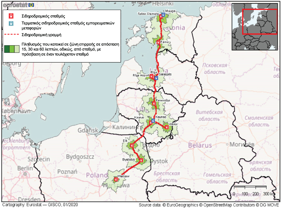 - Rail Baltica: σιδηροδρομική γραμμή που συνδέει την Εσθονία, τη Λετονία και τη Λιθουανία με την Πολωνία και παρέχει τη δυνατότητα σύνδεσης με τη Φινλανδία (στον διάδρομο «Βόρεια Θάλασσα – Βαλτική»)·