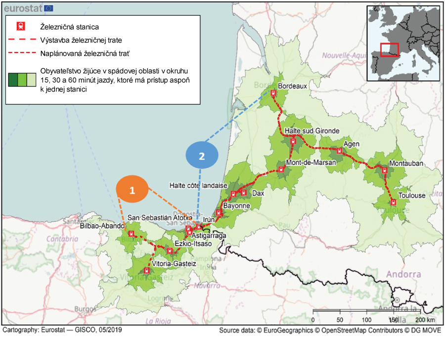 - Trať Basque Y a jej spojenie s Francúzskom: vysokorýchlostné železničné spojenie medzi mestami Vitoria v Španielsku a Bordeaux vo Francúzsku (v atlantickom koridore);