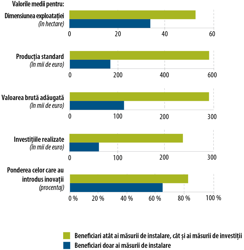 28 În cazul beneficiarilor ambelor măsuri, a fost luată în calcul doar partea din creșterea valorii adăugate brute anuale care era legată de sprijinul acordat prin măsura pentru instalare.